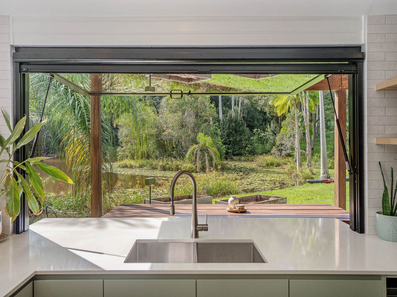 The extensively renovated home at ground level is super inviting with polished concrete floors and a kitchen that will bring out the hidden chef in you! There is loads of stone benchspace for preparation aswell as a stunning pop out window servery that when open takes in the lake and woodland beyond. Upstairs encapsulates three well-appointed bedrooms and two modern bathrooms and a central multi purpose room with American Oak flooring throughout. All this lends itself to functional, comfortable and stylish accommodation for families or those seeking a peaceful retreat. A standout feature is the expansive covered balcony / outdoor entertaining area—ideal for hosting guests or simply unwinding while overlooking the serene waters of the lake at all times of day.